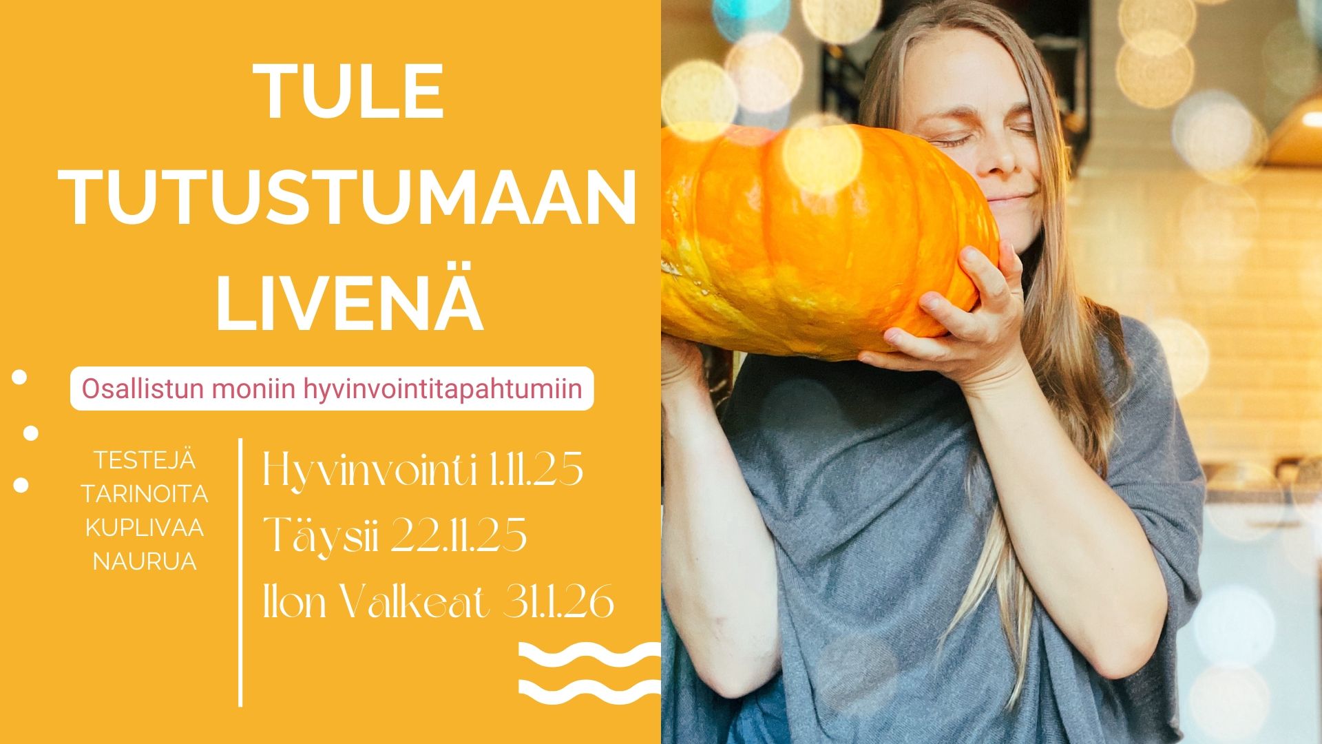 Minulla on tapahtumassa on pöytä, jossa teen hauskoja "Mikä parantava ruoka olet"-testejä ja mahdollisesti olen myös puhujana.